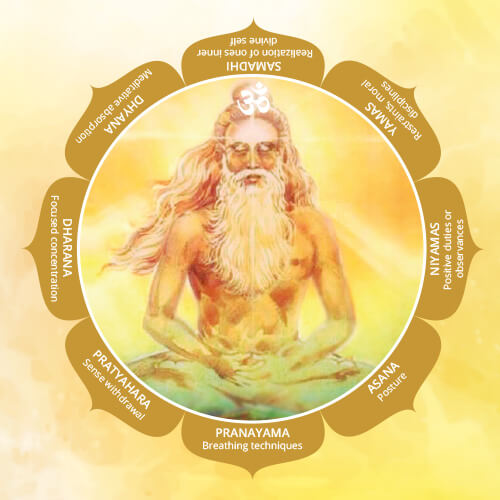 Während der Körper ruhiger wird, beginnt der Atem unter Kontrolle zu kommen und der Geist beginnt Momente der Klarheit und essentiellen Frieden zu erleben. Der alte Weise Patañjali beschreibt die acht Glieder in seinen Yoga Sutras wie folgt: